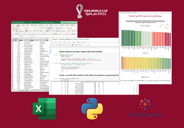 Find overall rating of all players that played in World Cup 2022 using Python, Excel, and Tableau.