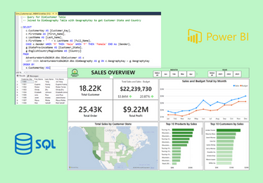 Create an interactive Sales Overview dashboard of AdventureWorks Sales and gather some insights.